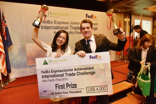 Wendy Lee and Aidan Scott are the 2015 Asia-Pacific champions of the FedEx Express Junior Achievement International Trade Challenge. They won the title in Singapore last month, beating students from nine other countries to take the title.
