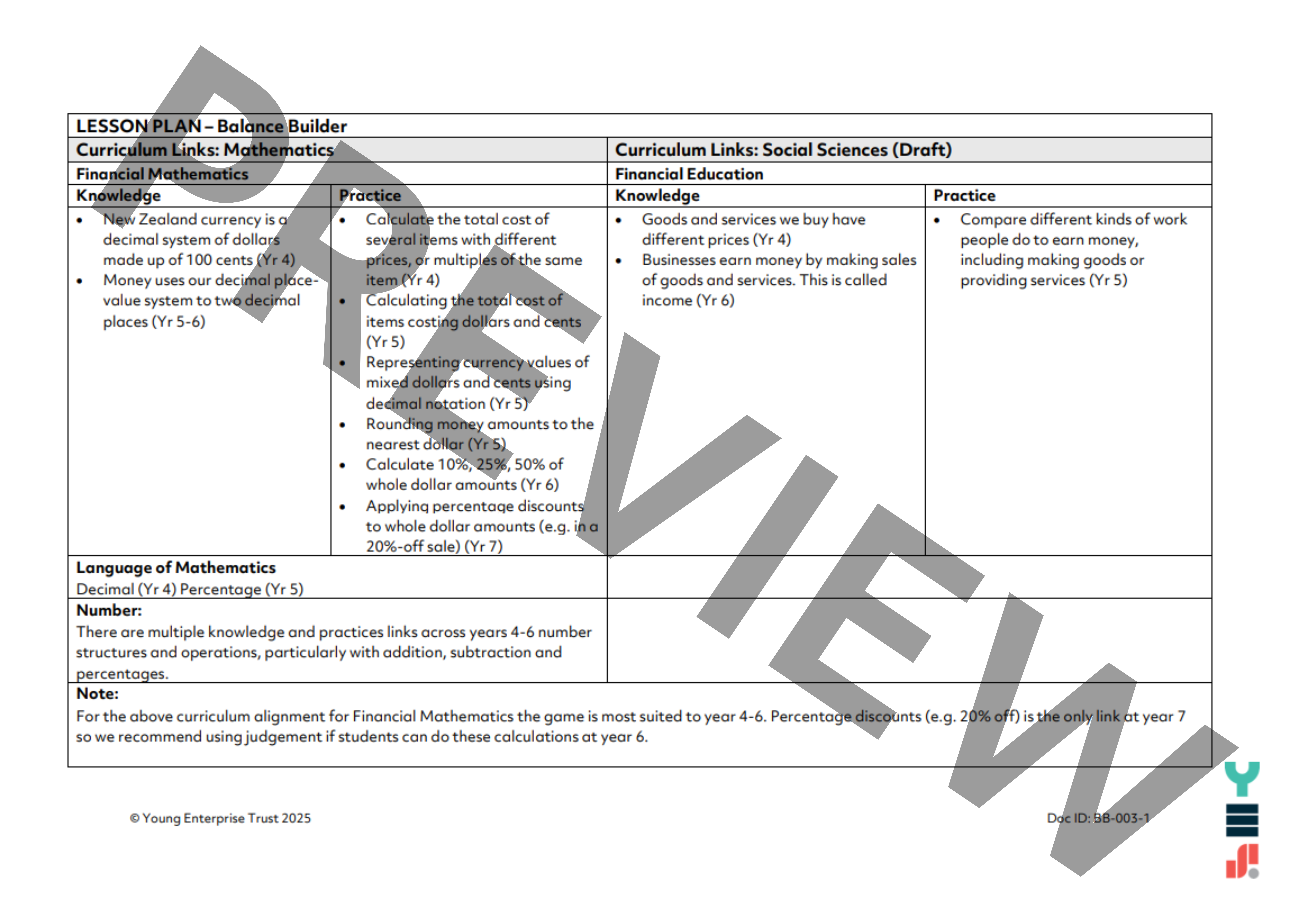 As they play, students will: Discover different ways people earn and spend money, practise number skills with money, adding, subtracting, multiplying and using percentages, and record their money flow in a personal Money Tracker.