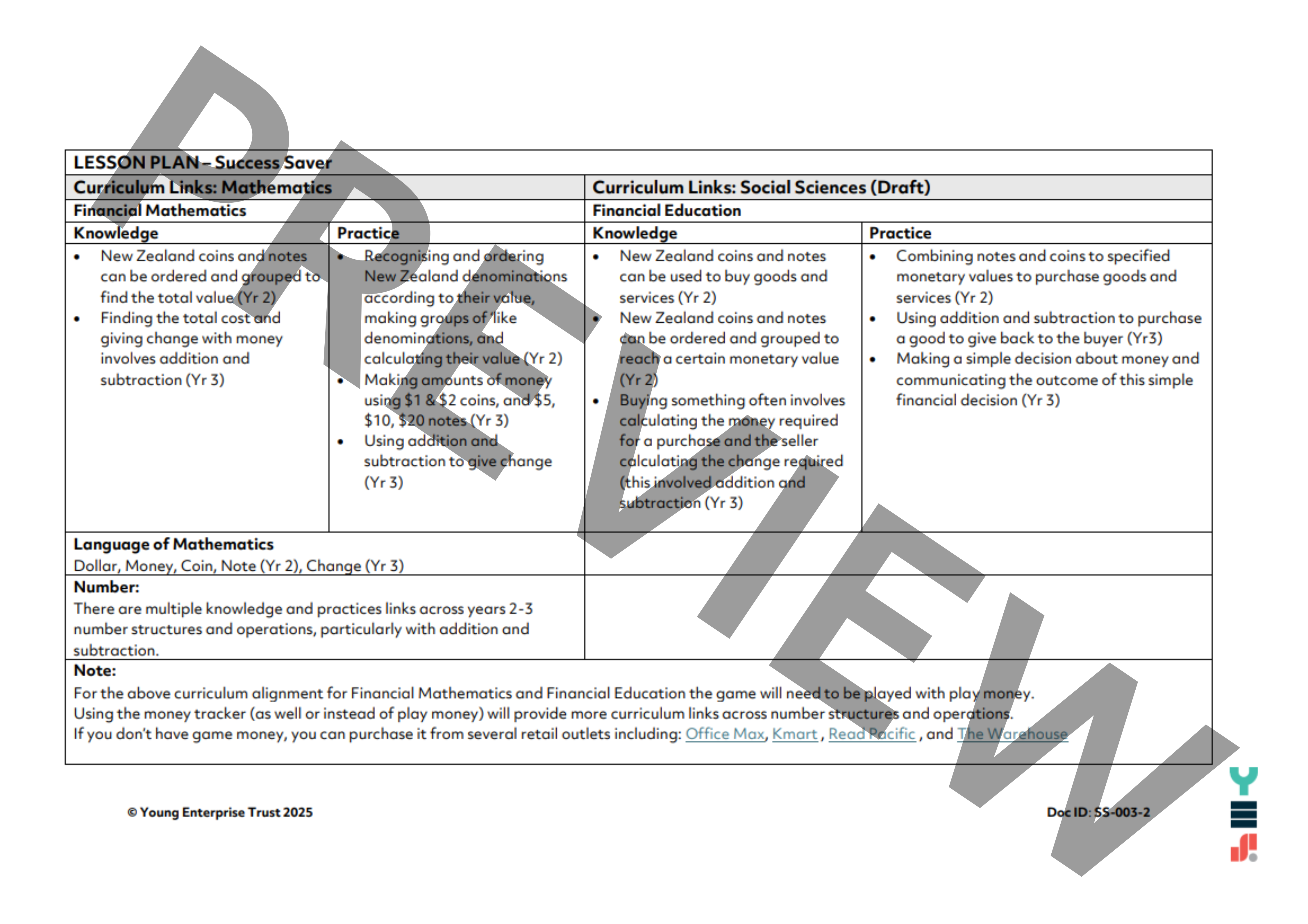 · Social Sciences(Draft): Economic Activity -Financial Education strand