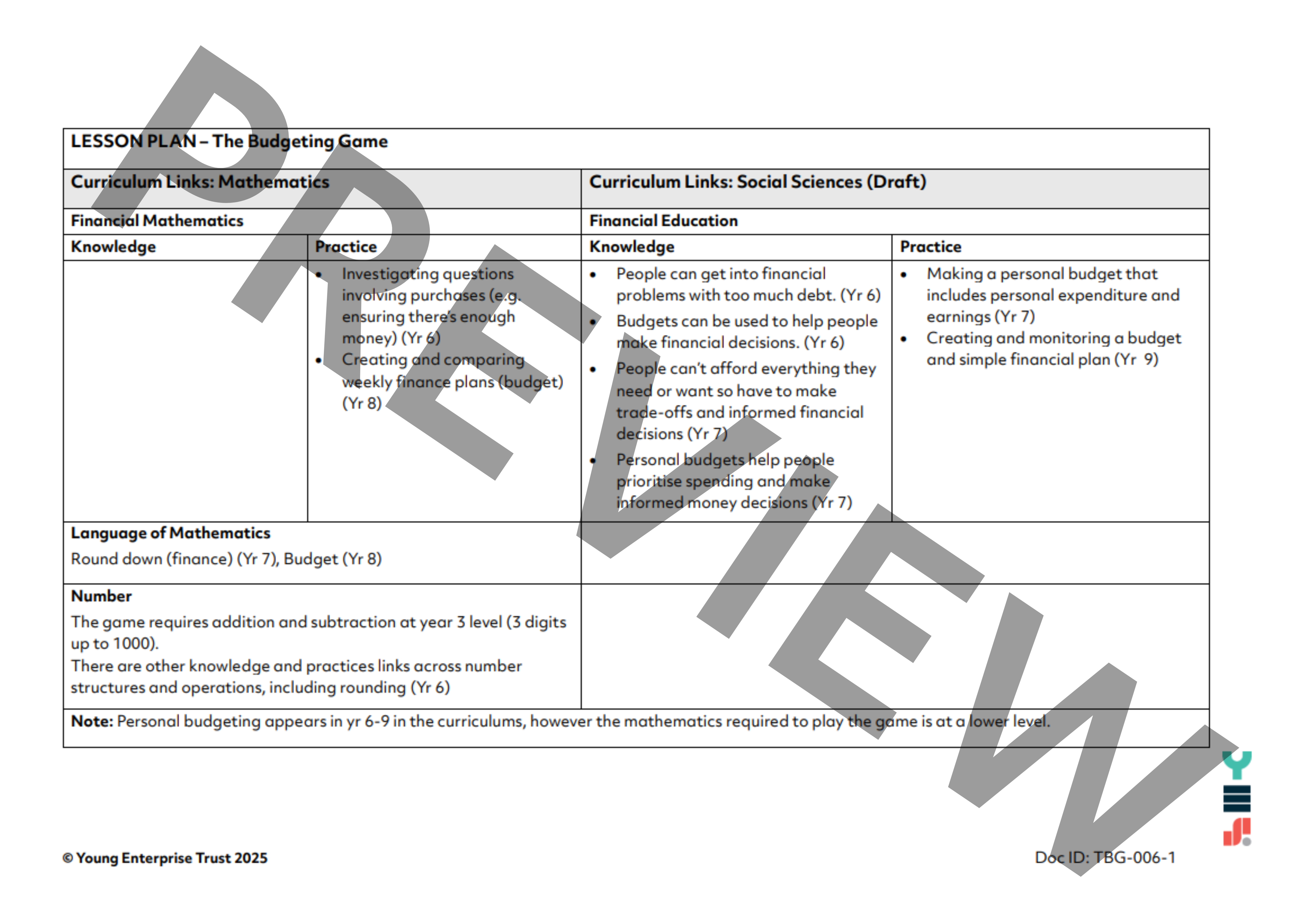 The Budgeting Game is also designed to support the curriculum Capabilities
